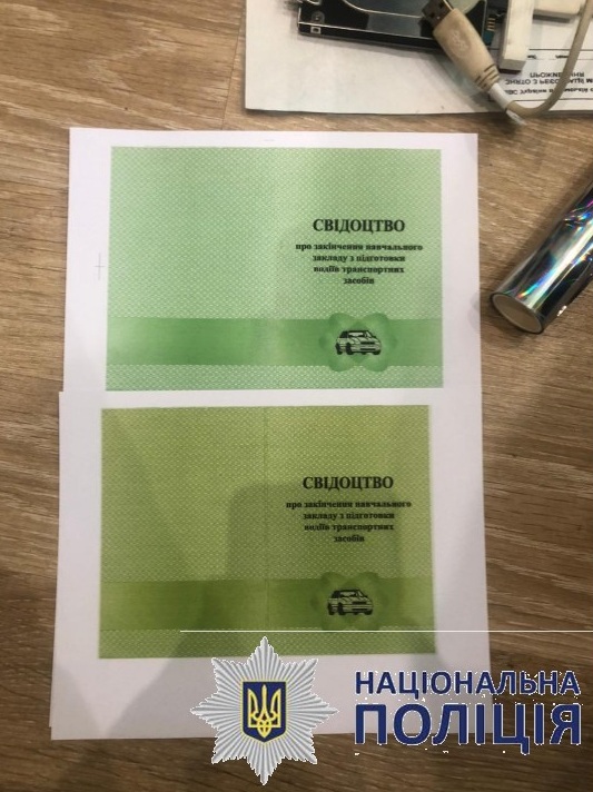 Во время обыска по месту регистрации фигуранта изъяли уникальный прибор для изготовления бланков строгой отчетности, который практически невозможно приобрести в частное пользование, а также поддельные документы на разные имена. Всего у злоумышленника изъяли устройство для нанесения голограмм на документы, 2 комплекта компьютерной техники, принтеры, устройства для печати пластиковых удостоверений, 2 рулона прозрачной пленки с голографическим изображением «МВД Украины», 11 фальшивых водительских удостоверений на разные фамилии, 13 свидетельств на регистрацию транспортных средств, 20 поддельных рецептов на наркотики, а также бланки дипломов о высшем образовании. Кроме того, у правонарушителя изъяли пакет с каннабисом. Все изъятое направили на экспертизу.
